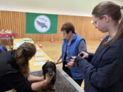 Mit fachkundigem Blick überprüfte Frau Behring die Vollständigkeit der Zähne und maß den Brustumfang, da dieser das entscheidende Maß für die Einteilung des Teckels in Normalschlag-, Zwerg- oder Kaninchenteckel ist. Bei jedem Hund wurden die rassetypischen Merkmale: Körperbau, Fell, geschlechtsspezifische Ausprägung, Augen, Bart und Augenbrauen begutachtet.