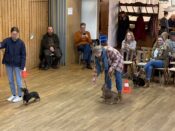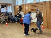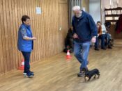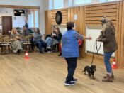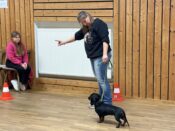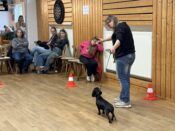 Nach einer kurzen Begrüßung durch unseren 1. Vorsitzenden Jürgen Reinhart und einführenden Worten der Richterin Frau Behring begann das Richten. Zuerst mussten die Dackel eine kleine Runde zum Aufwärmen drehen und dann ging es zum Richtertisch, wo Frau Behring die aufgeregten Hunde und ihr Personal mit lieben und persönlich gehaltenen Worten zu beruhigen verstand. Sie nahm sich viel Zeit, war geduldig, streichelte lange jeden Hund und besprach mit den Besitzern bereits vor der Ringpräsentation in aller Ruhe etwaige Auffälligkeiten an der Anatomie oder Figur und gab diesbezügliche Tipps, beispielsweise Futterempfehlungen bei zu kräftigen Zeitgenossen auf vier Pfoten. Für Frau Behring steht immer das Hundewohl im Vordergrund und dies überzeugte alle.