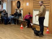 Nach und nach sortierte sie alle Dackel mit der Bewertung „vorzüglich“ in den jeweiligen Haararten und Klassen aus und ließ zum Ende die besten drei gegeneinander laufen. Frau Behring entschied sich für folgende Dackel: